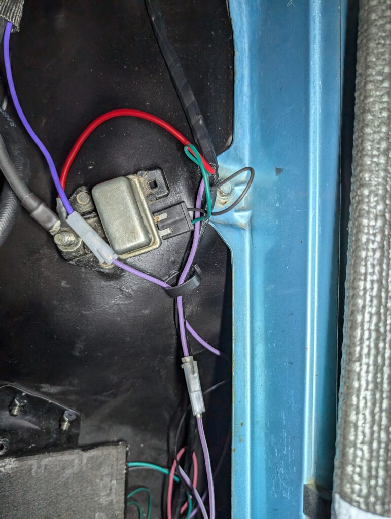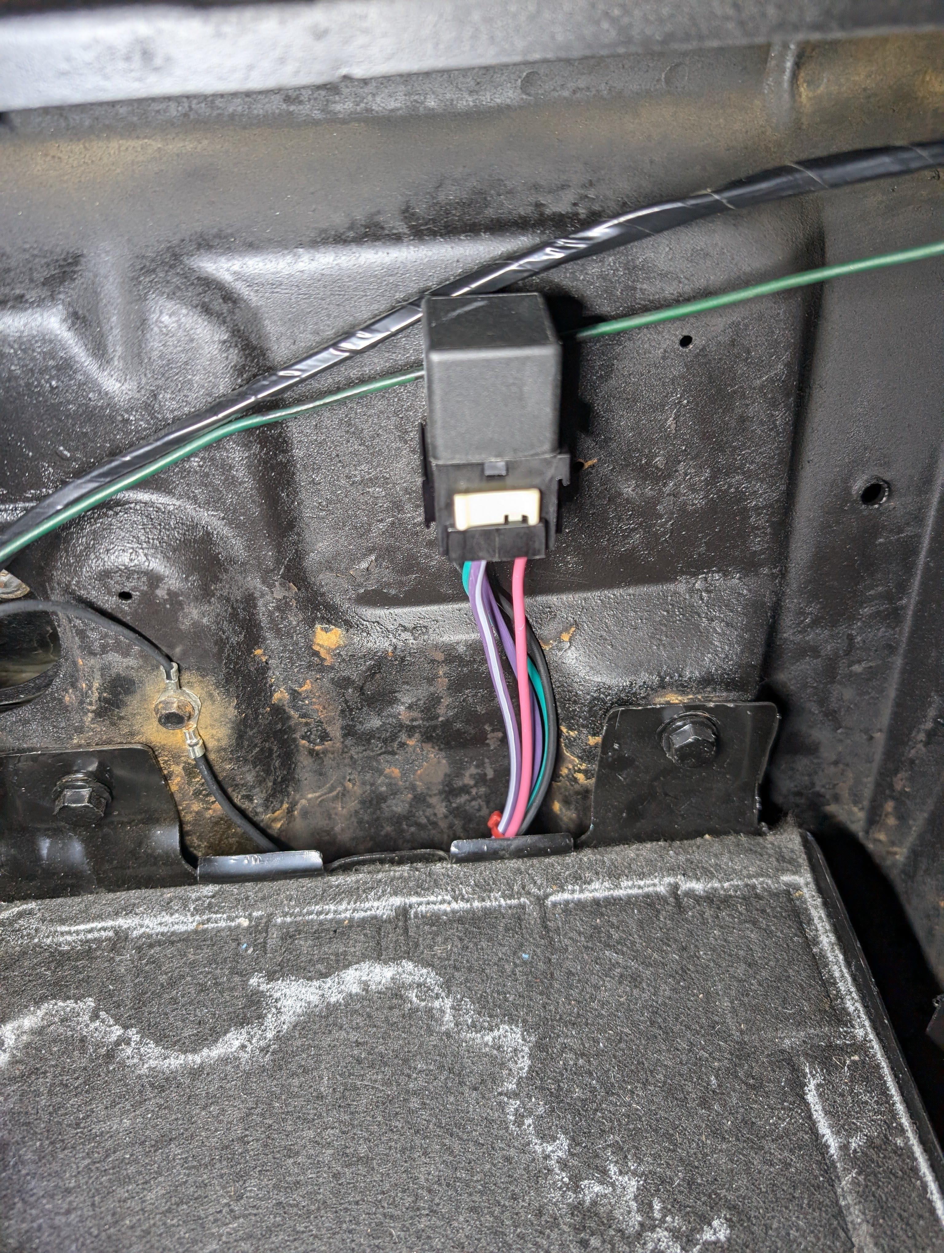 Having just installed a new engine and forward lamp harness, I did not want to cut any existing wires to fit in the relay. Doing so would have made my setup more secure, but I just want to make things harder for a would be thief so they’ll move on.