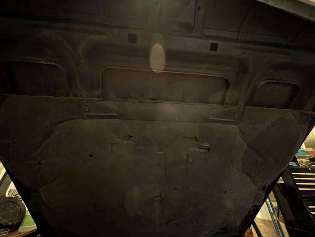 Home→Engine→Hood Insulation and PaintHood Insulation and PaintBefore Found a little nest at the bottom of the insulation when removing it. After ← Heater CoreMisc Engine Parts→
