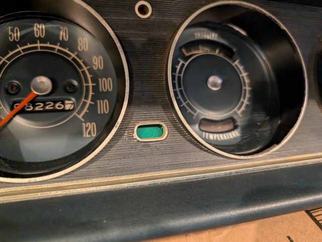 While replacing the dash harness, it felt like the perfect opportunity to pop out the gauge cluster and finally fix the cracked green turn signal indicator lens. I had tried to replace it years ago without removing the cluster, and while that attempt was better than nothing, the results weren’t exactly ideal.